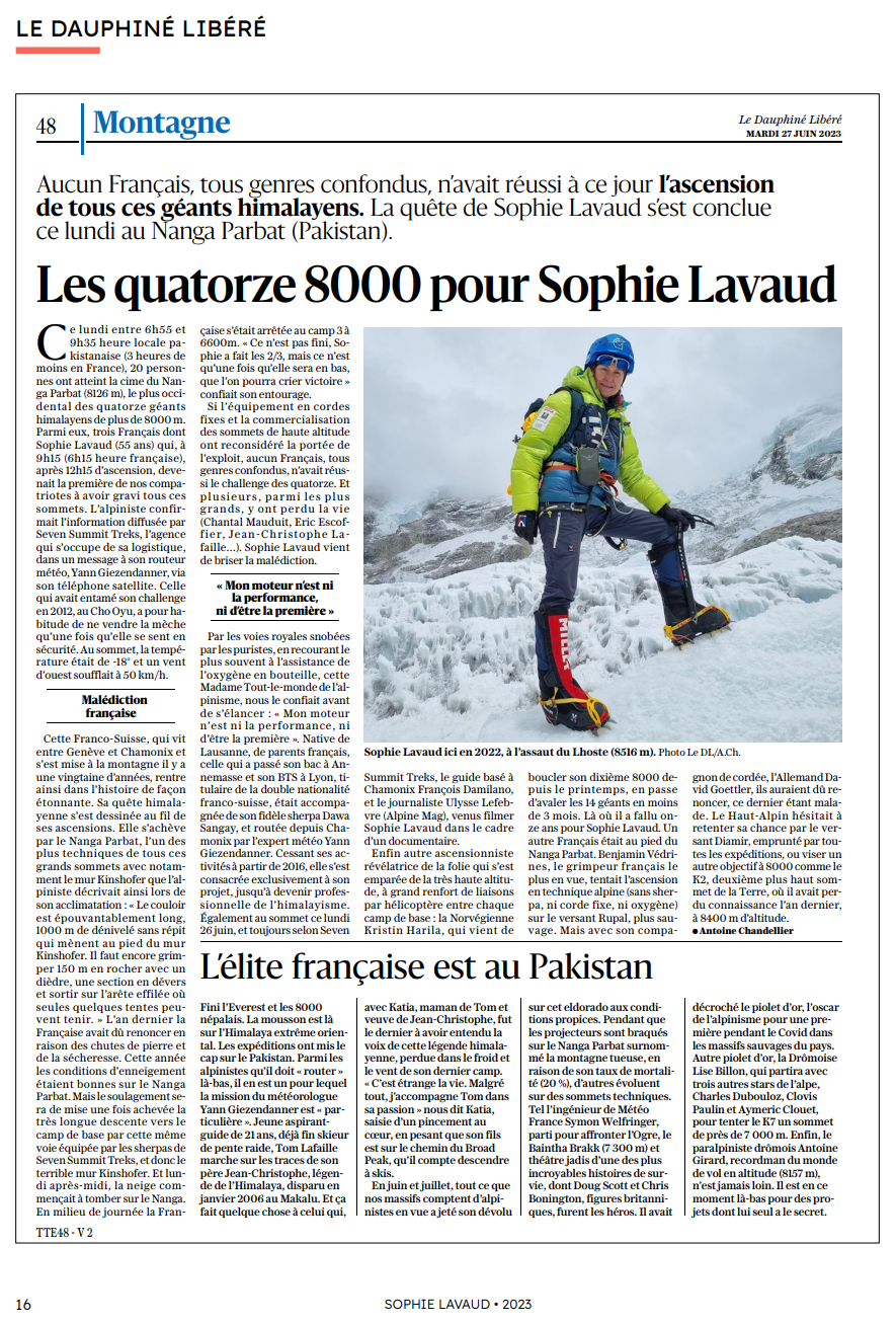 Aucun Français, tous genres confondus, n’avait réussi à ce jour l’ascension de tous ces géants himalayens. La quête de Sophie Lavaud s’est conclue ce lundi au Nanga Parbat (Pakistan).