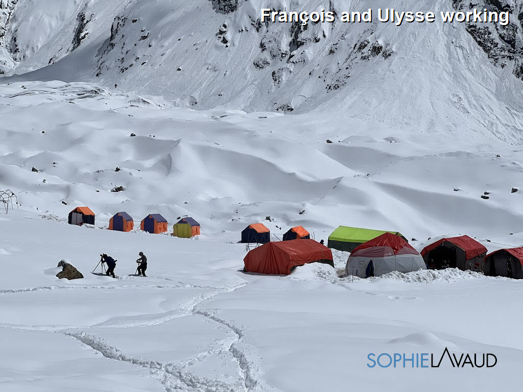 A peine le camp monté et la neige fait son apparition… 4 jours non-stop d’intempéries et presque 1 mètre de neige complique notre installation et une belle diarrhée me torpille le ventre histoire de compléter le tableau !