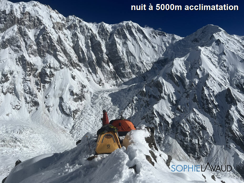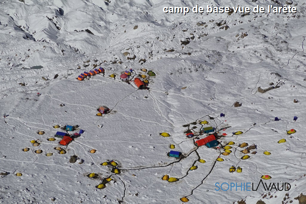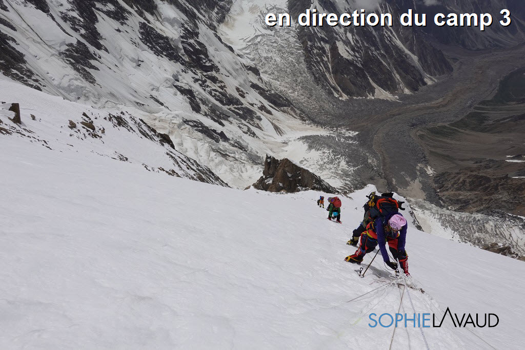 Il y avait une 50aine de prétendants au sommet du Nanga Parbat cette année ce qui est beaucoup pour cette montagne car les camps 1 et 2 ne peuvent accueillir que quelques tentes et un tournus est nécessaire. Après cette fameuse intempérie qui nous a clouée au camp de base, nous avons fait le choix d’une rotation sur l’arête en face du Nanga par sécurité et pour laisser la fixing team travailler. Tous les grimpeurs qui partaient ensuite sur le Baltoro leur ont immédiatement emboité le pas. Une belle fenêtre météo leur a permis de faire le sommet assez rapidement.