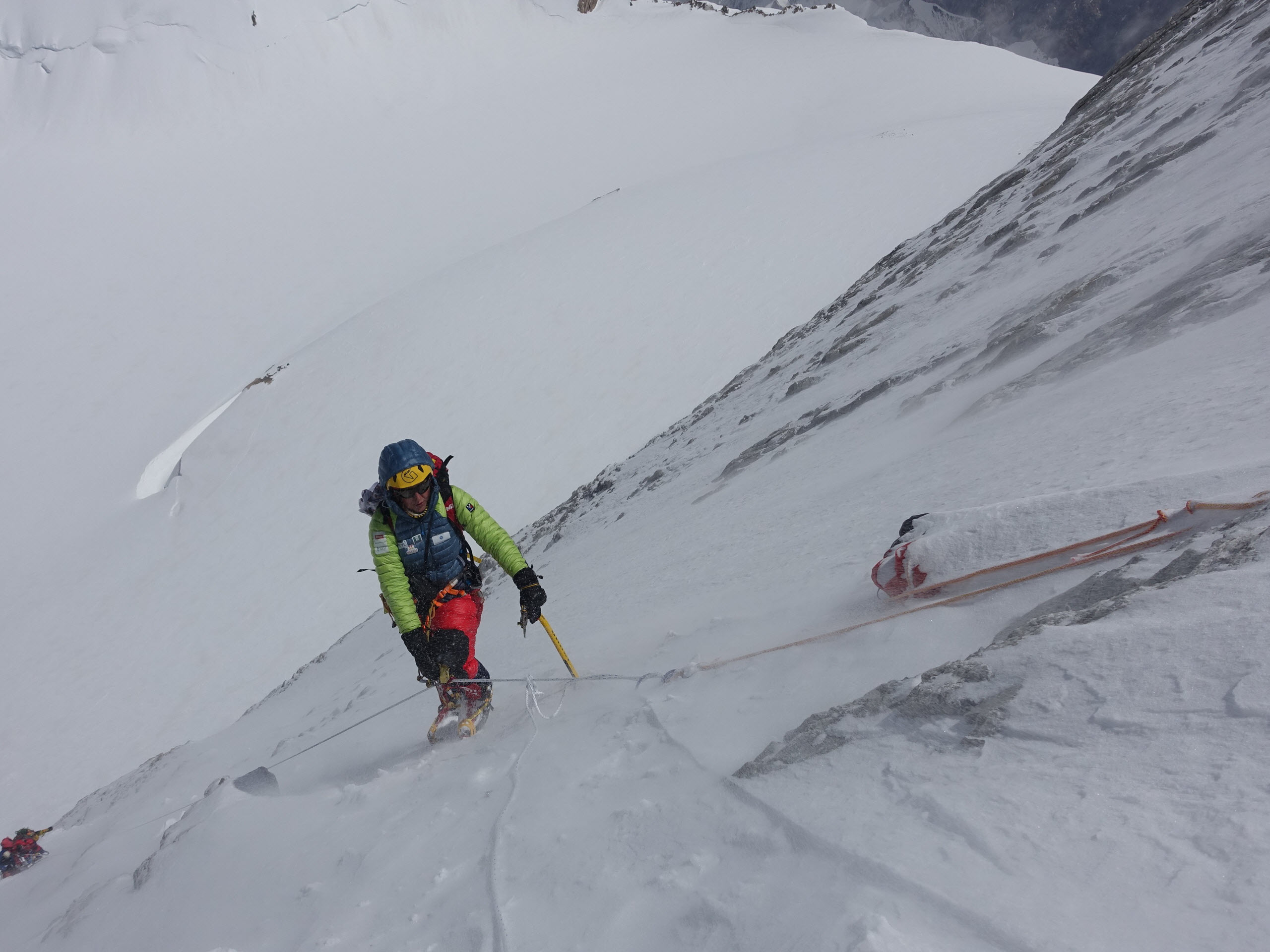 Ce sommet, le grand frère du G2 est bien plus dur que j'avais imaginé. Je comprends pourquoi tout le monde va au G2 et non au G1. Les pentes dans le couloir des japonais pour atteindre le camp 3 sont périlleuses. Au sommet le ciel est déjà bien laiteux, avec Sangay on entame la descente dans le brouillard. Il n'y a pas de cordes fixes... Merci mon point GPS du camp 3 qui va nous sortir du mauvais couloir. On a joué un de nos jokers sur cette descente.