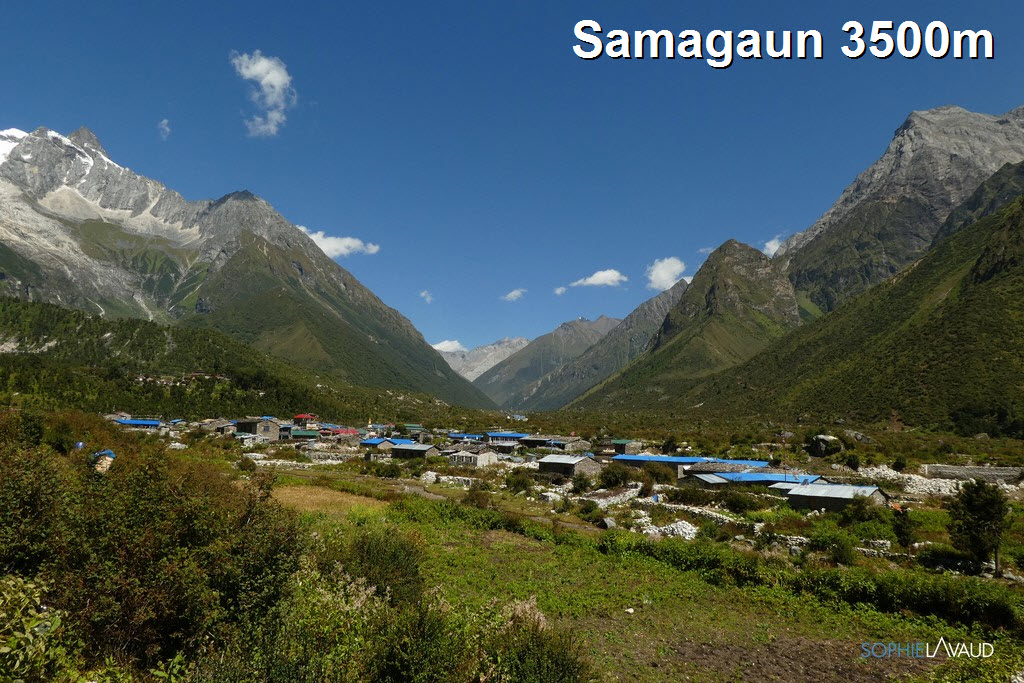 Premières ambiances au pied du Manaslu à l’arrivée à Samagaun, dans la vallée.