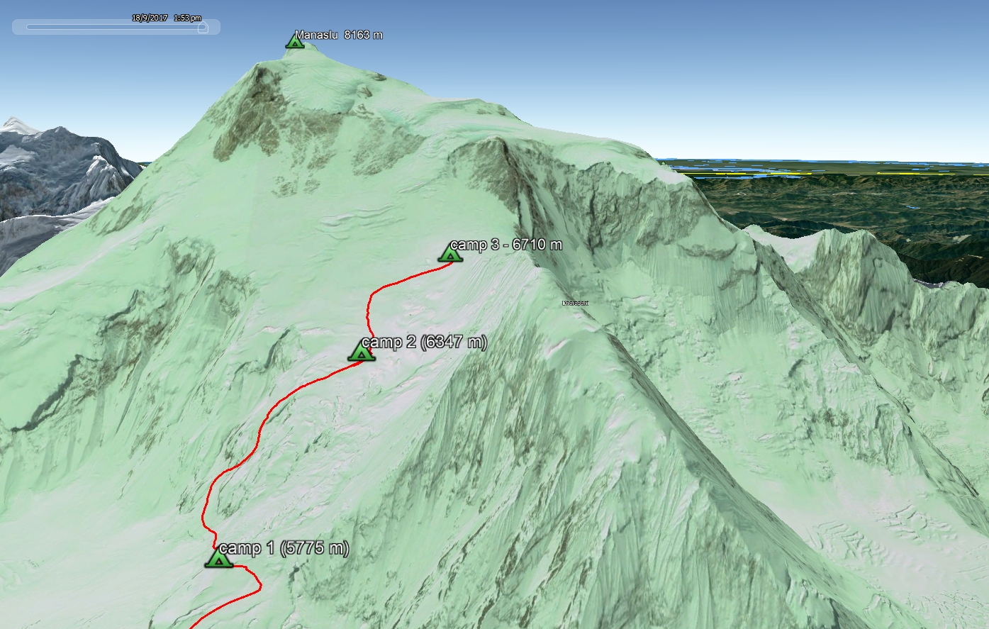 Premières montées en haute altitude, camp 1 (5775 m) puis camp 2 (6350 m) et camp 3 (6711 m)