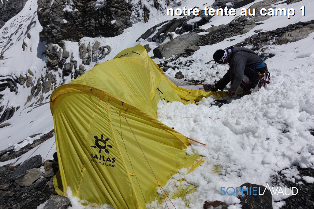 Première mauvaise surprise, notre tente du camp 1 est totalement défoncée. Il nous faudra plus d’une heure pour la fermer et récupérer nos affaires en dépôt.