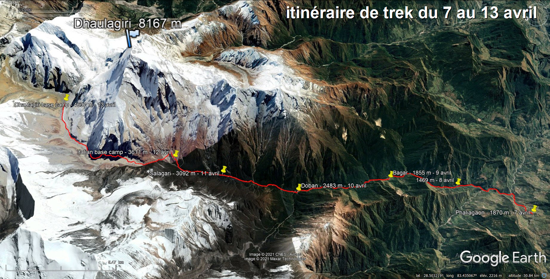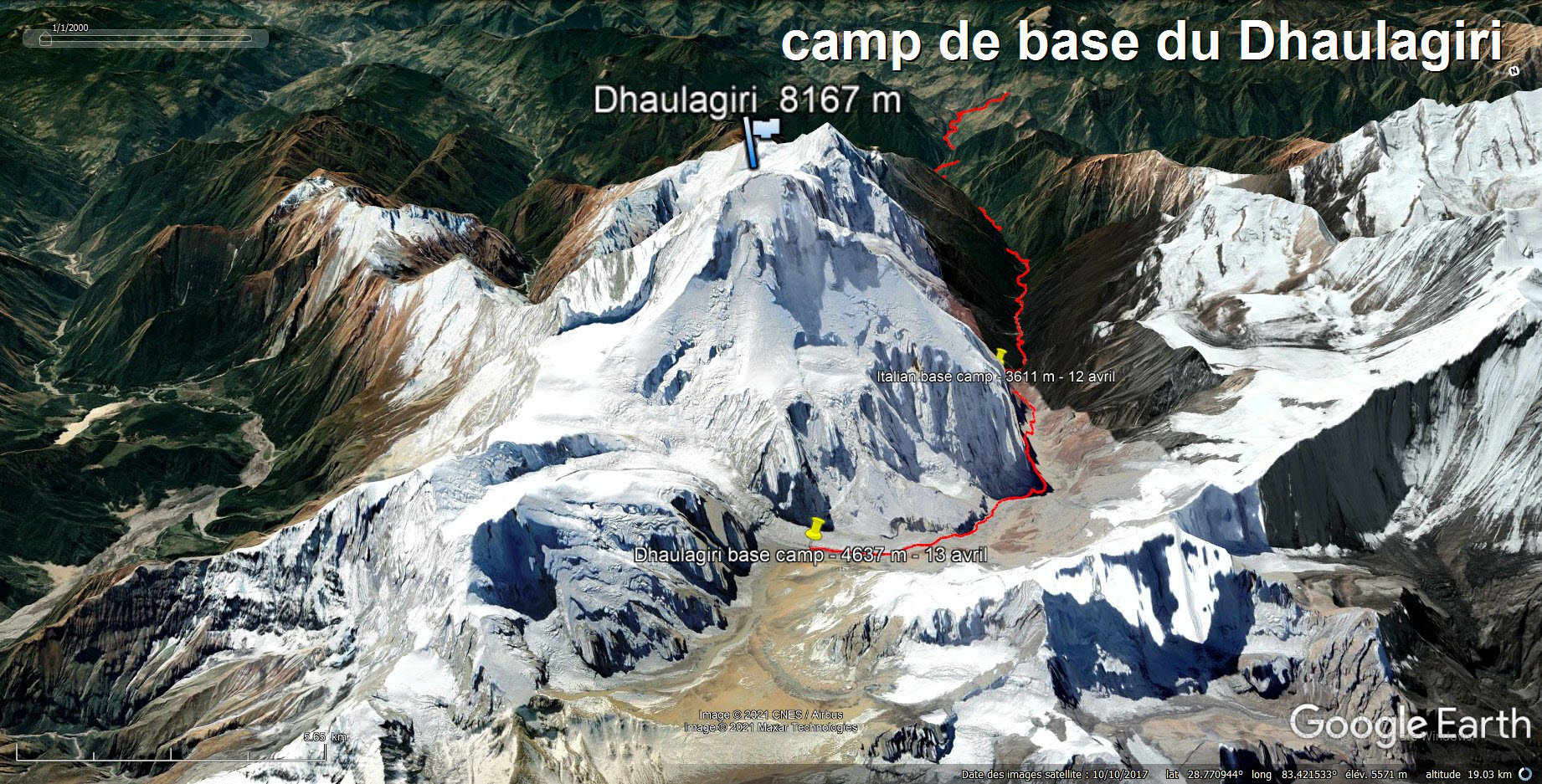 Hier 12 avril, bivouac au camp de base italien à 3610 m (dernière étape avant le camp de base), et aujourd’hui mardi, ils atteignent le camp de base du Dhaulagiri à 4637 m !