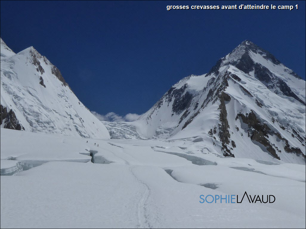 La dernière épreuve sur ce Gasherbrum I a été le lendemain avec la traversée de l’Icefall pour rejoindre le camp de base. Même si nous avons attendu le début de soirée pour le regel, les chaleurs des jours précédents avaient ravagé le glacier. De nombreux ponts de crevasses se sont écroulés. La voie est chaotique, encordée avec Sangay en tête, il nous a fallu 5 heures 30 pour rejoindre le camp de base.
