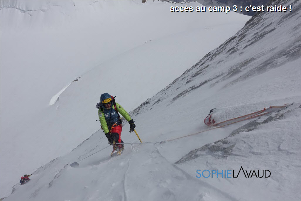 En effet, la petite équipe coréenne qui a fait le sommet le 7 juillet en plus de 20 heures, n’avait fixé qu’environ 300 mètres sur les 1000 au total. La montée a donc été rude et engagée sans compter une température glaciale.