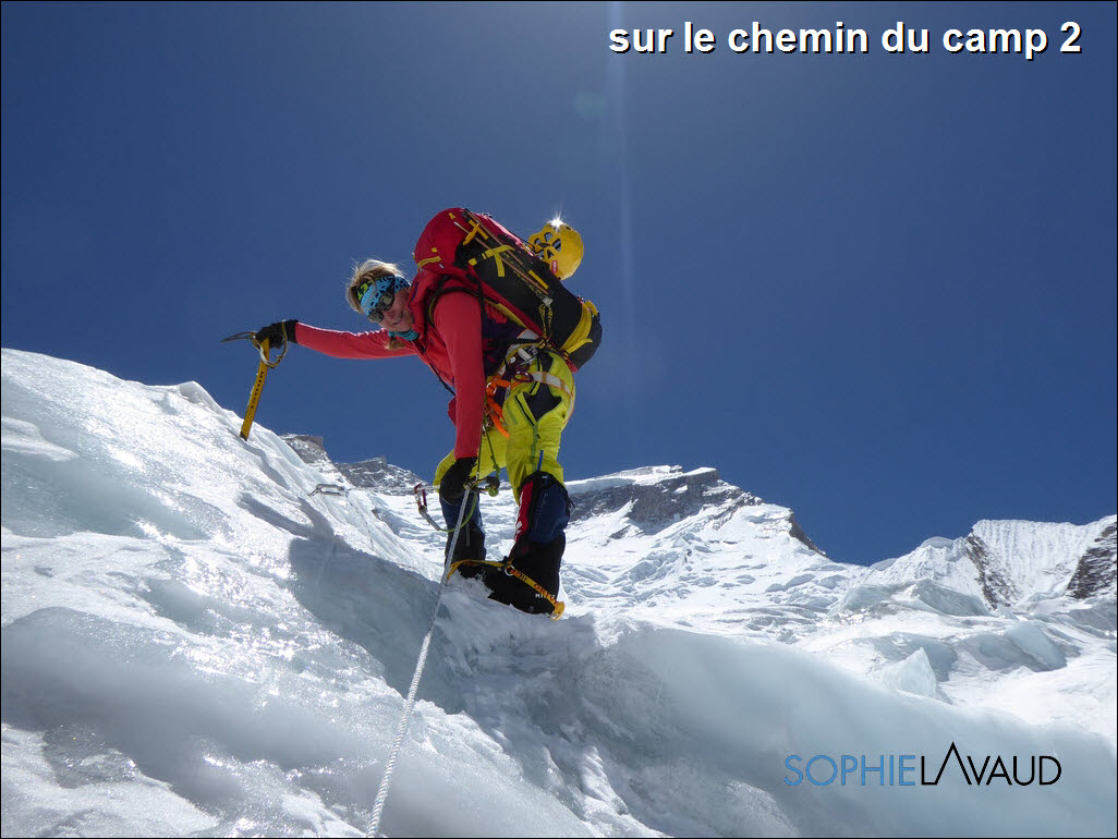 Cela fait déjà un mois que je suis arrivée au Népal que le temps passe ! De retour depuis quelques jours de notre deuxième rotation, où j’ai passé deux nuits au camp 2, même si je n’ai pas pu aller au camp 3, la bonne nouvelle est que l’équipe de choc de la fixing team ont réussi à ouvrir la voie en passant par l’éperon des “Hollandais”, itinéraire qui n’a pas été répété depuis de nombreuses années. Itinéraire technique mais ma foi assez “safe” quand on voit la complexité de l’environnement. Un merci spécial à l’équipe de Nims (14/7 Project Possible) et en particulier Gyalzen Sherpa qui ont fait un travail formidable. Chapeau les gars car ce n’était pas gagné et sans cet accès au camp 3, … c’est cuit !
