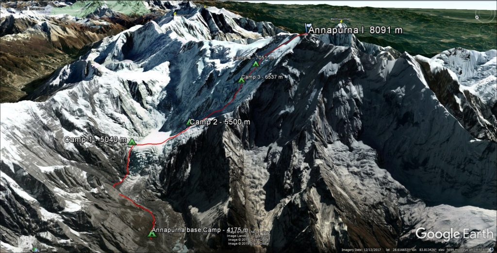 Bonjour,Nous avons le plaisir de vous annoncer que Sophie Lavaud était au sommet de l’Annapurna1 (8091 m) aujourd’hui 23 avril 2019 à 15h30 heure locale.Partie le 20 avril du camp de base (4180m), elle est allée directement au Camp 2 (5480 m). Le 21 avril , après 7h30 de grimpe, elle atteignait le Camp 3 (56537 m).Le 22 avril après une courte nuit, elle quitte le Camp 4 (7051 m) à 22h30, il lui aura fallu 17 heures pour venir à bout des 1000 m qui la séparait du Sommet.Ce soir elle passe sa nuit au camp 4 avant de rejoindre le camp de base.Encore quelques jours de patience pour avoir le récit détaillé avec nous l'espérons quelques photos.Bonne nuit Sophie !Christine / Philippe[caption id="attachment_5436" align="alignleft" width="1024"]