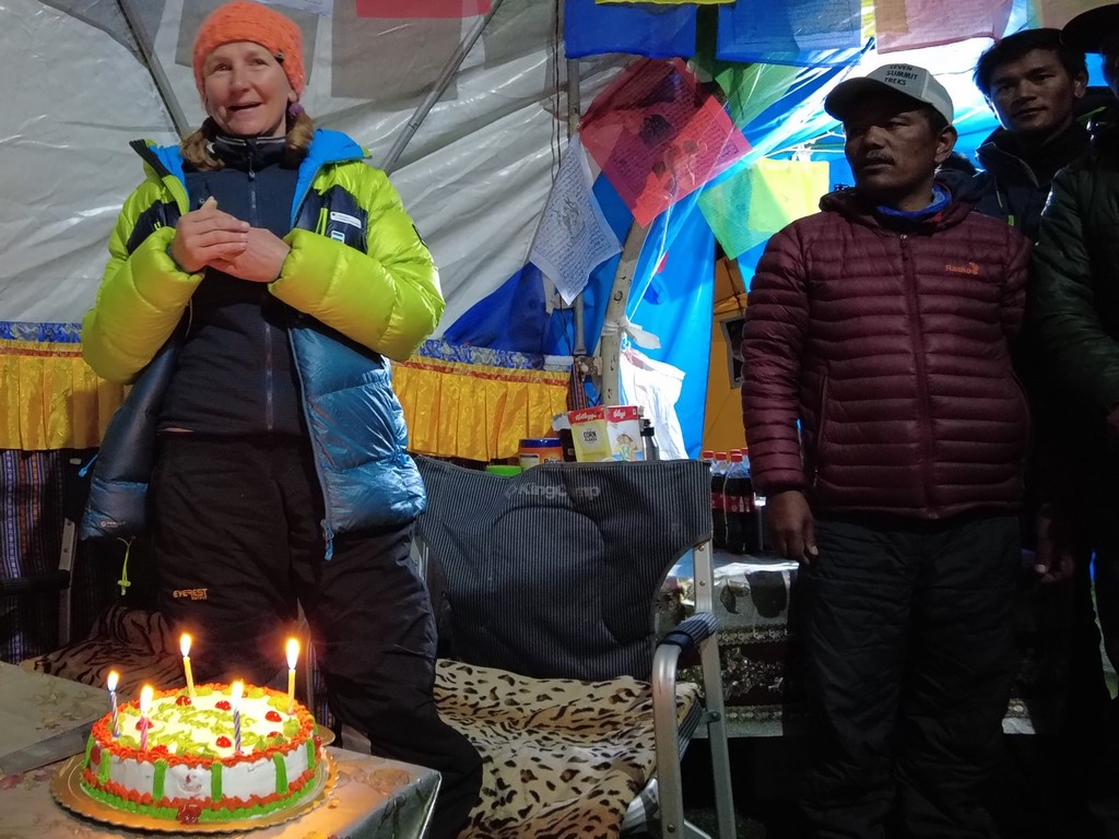 Double gâteau bien mérité, « birthday » and « summit cake » après la désescalade de l’icefall en cadeau d’anniversaire ! happy end !