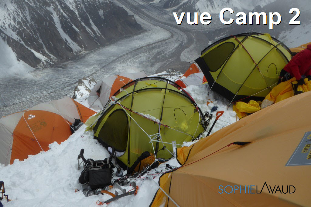 Nous sommes partis du camp de base le 10 juillet à 4 heures du matin direction le Camp 1 puis Camp 2 puis Camp 3 avec une perspective de sommet le 14 !!… La rotation est ambitieuse car les cordes ne sont fixées que jusqu’au Camp 2. Cela veut dire que les sherpas qui sont partis le même jour que nous mais sont allés directement au Camp 2 doivent fixer le Camp 3, monter les tentes, les cooks, les bouteilles d’oxygène avec à peine 24 heures d’avance.