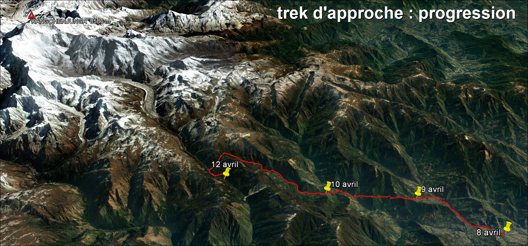 Sophie poursuit son trek d’approche en direction du Kangchenjunga, elle est actuellement dans un village situé à 3000 m d’altitude, le long de la Sumbuwa Khola (rivière en népalais).Le glacier n’est plus très loin (10 km environ en nord-est). Le paysage va radicalement changer dans les jours à venir, pour devenir plus minéral.